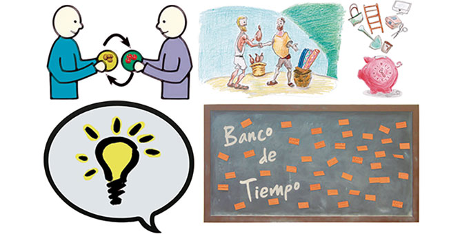 Otra alternativa, los Bancos de Tiempo. Nacidos para el depósito de habilidades y servicios, donde las cuentas corrientes se miden en tiempo propio. El sistema es sencillo: los usuarios comparten a través de una plataforma sus conocimientos y experiencias, ofreciéndoselas al resto a cambio de tiempo. Posteriormente ese tiempo, en forma de créditos, es a su vez canjeado por alguna actividad o algún servicio que necesite de los que aquí se ofrecen. En España existen ya varios Bancos de Tiempo, incluso tenemos uno en Baleares, creado con el objetivo de favorecer la solidaridad. Cofinanciado por el Fondo Social Europeo y promovido por la Asociación Balear para la Calidad de Vida. Podemos encontrar más información en: